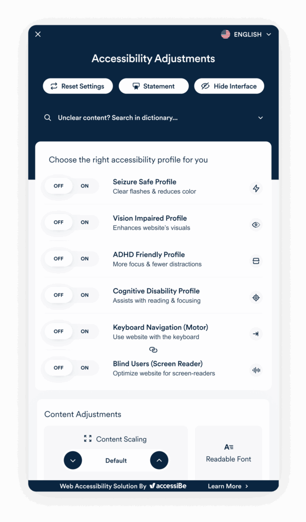 With six profiles and dozens of UI adjustments, allow visitors to personalize their browsing experience to meet their unique needs, every session