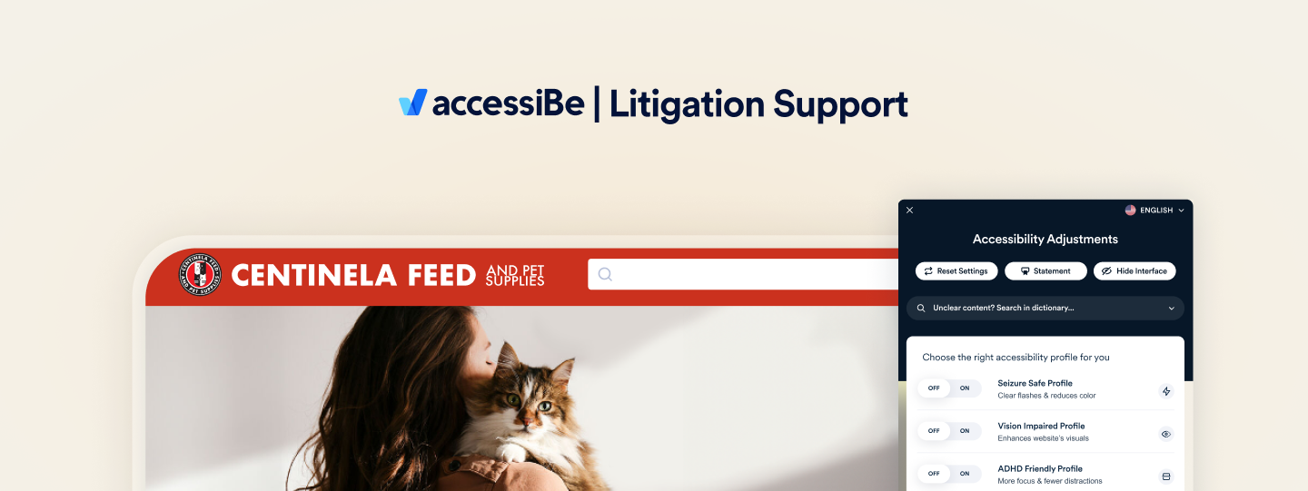 Centinela Feed, a leading pet supply retailer in Southern California and accessiBe customer, found itself targeted by an accessibility lawsuit in August 2023, when a complaint was filed alleging that its website violated the California UNRUH Civil Rights Act.