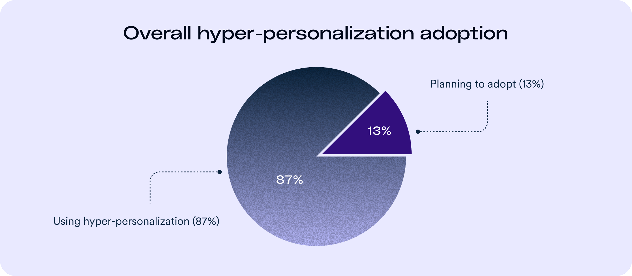 Our survey of over 300 eCommerce leaders confirms that hyper-personalization is now table stakes among mid-market brands: 87% of retailers already use it, and 13% plan to adopt it in the future.