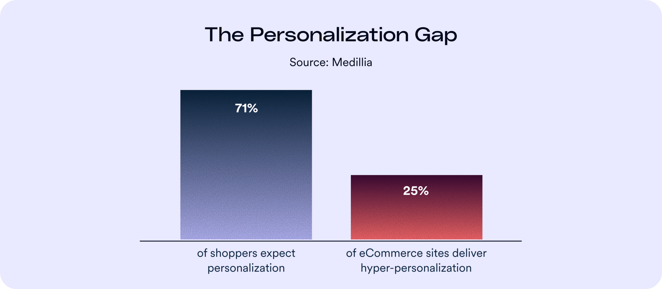 Despite the hype, most brands are still far behind consumer expectations. While 71% of shoppers demand personalized experiences, only 25% of eCommerce journeys deliver them—a gap that represents billions in untapped revenue.