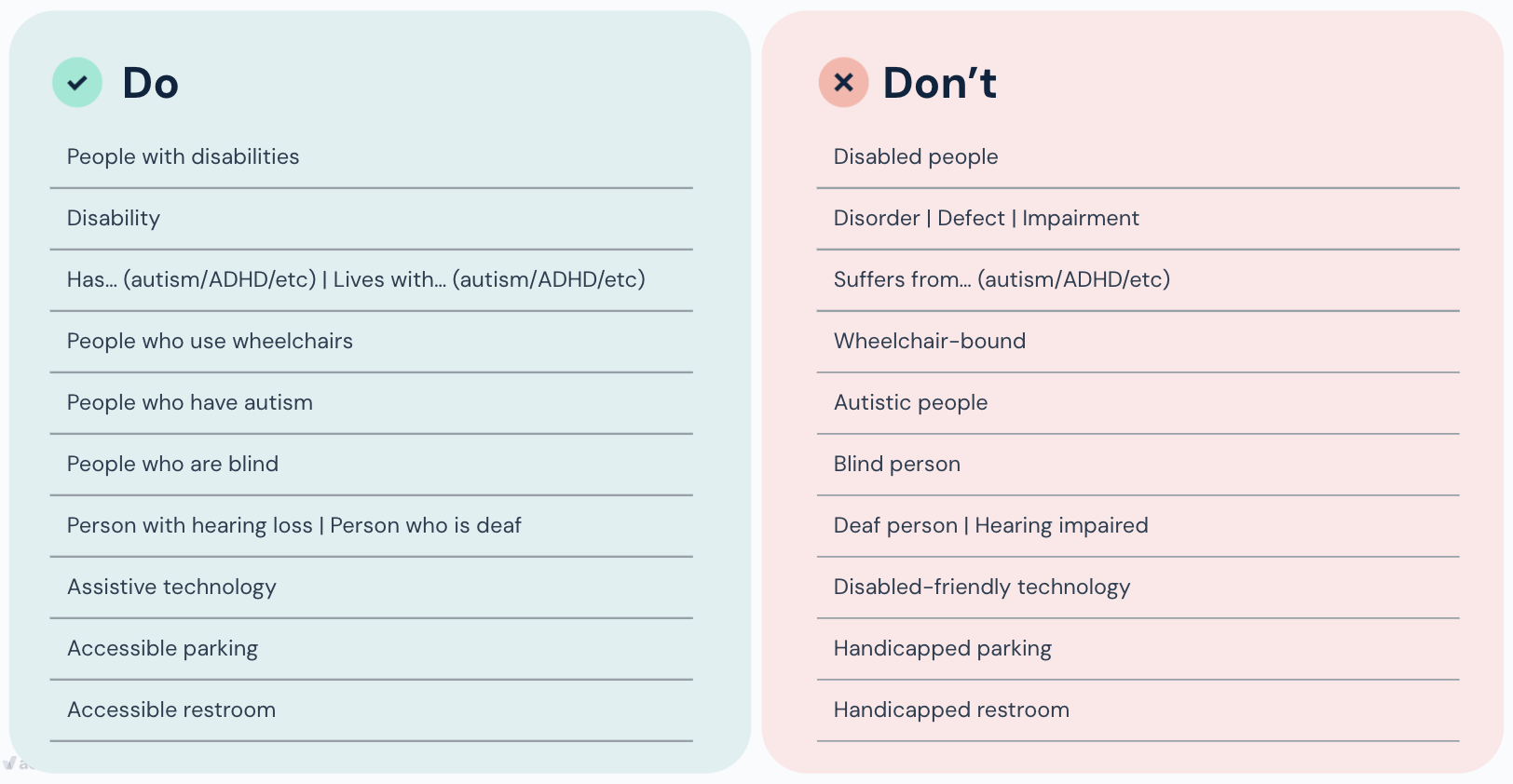Examples of inclusive language for people with disabilities