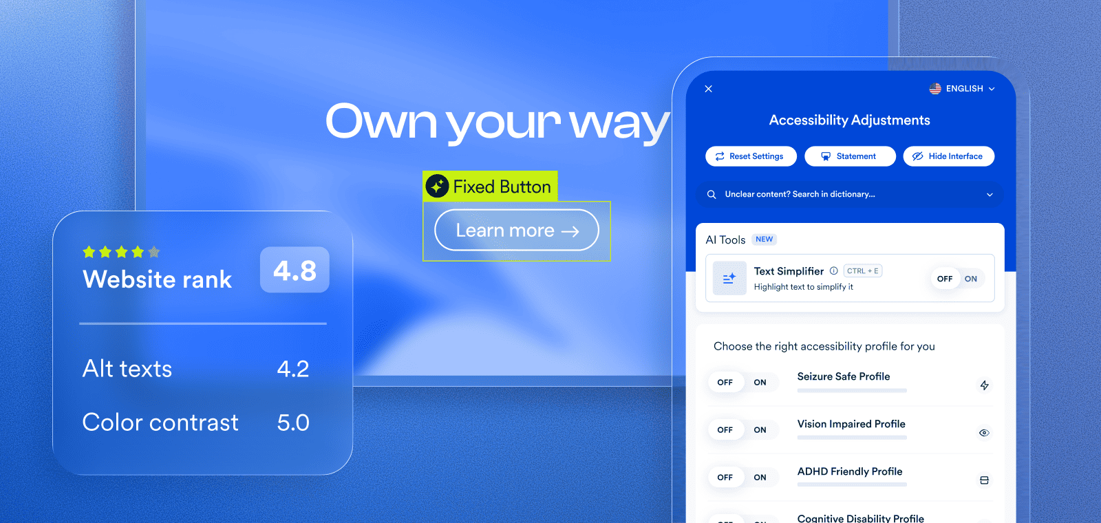 These enhancements may include refinements to focus behavior, labeling, skip links, and the application of appropriate ARIA roles, attributes, and properties—helping ensure accessWidget is optimized to support the site’s design, interactions, and assistive technology behavior without modifying source code.